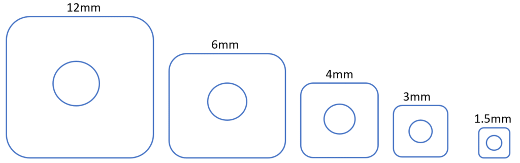 Ceramic resonator filters usually have high-Q resonating elements which gives the advantage of lower passband insertion loss. The resonators employ low loss dielectric materials and come in a different size depending on the Q-factor required. The various resonator sizes are shown below for reference.