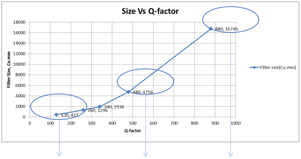 A typical 4th-order filter in this case would have a volume of approximately 4756 mm³, with dimensions of 29 × 20 × 8.2 mm.
