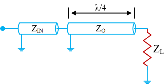 @L\sim\frac{\lambda}{4}:\quad Z_{IN} = \frac{Z_0^2}{Z_L}, \quad Z_0 = \sqrt{Z_{IN}Z_L}